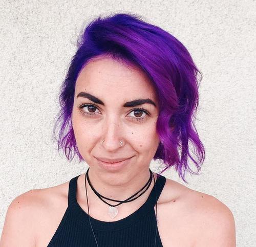 Bobs are adorable, aren't they? But if you want to go from subtle and cute to trigger-happy and passionate, and so consider a striking majestic hue such as this. It's a bully mode to add together some excitement to your bob, and those footling curled ends ensure there's a feminine bounce on this exotic 'do.