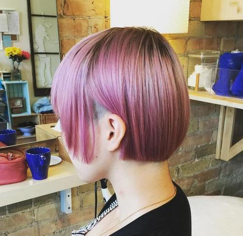 Cute as a mouse? Indeed. This simple and dainty hairstyle shows that y'all can still maintain your utter femininity and dainty appeal, even with exotic colors. Loving this imperial-pinkish shade, a lighter take on the regal trend that looks oh-so-lovely on this stick straight short haircut.
